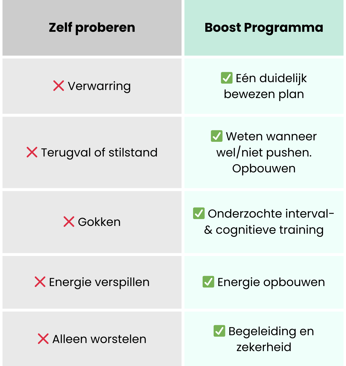 Het Boost Programma helpt je brein écht te herstellen: duidelijk, concreet, gebaseerd op 2 neuro-onderzochte methoden, met bewezen resultaten bij meer dan 2000 mensen.