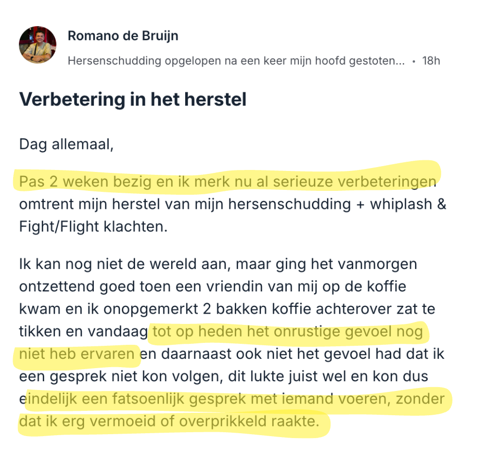 ✅ Mark zag dat zijn hersenmist aanzienlijk minder werd na slechts drie weken, en dat hij weer taken kon uitvoeren die hij eerder niet meer aandurfde.