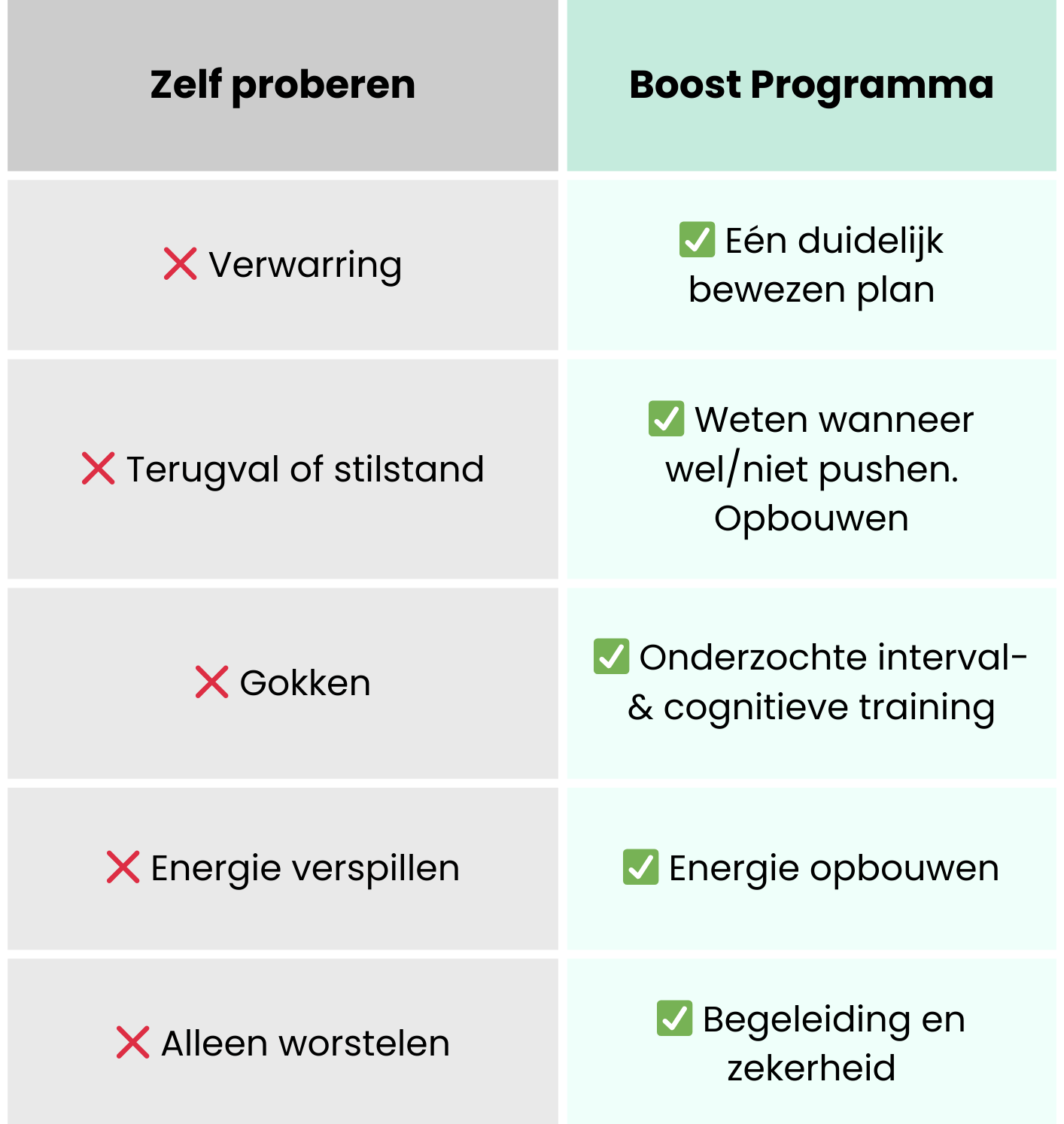 Omdat het Boost Programma niet “weer iets extra’s” vraagt van je lichaam, maar juist werkt aan de basis: